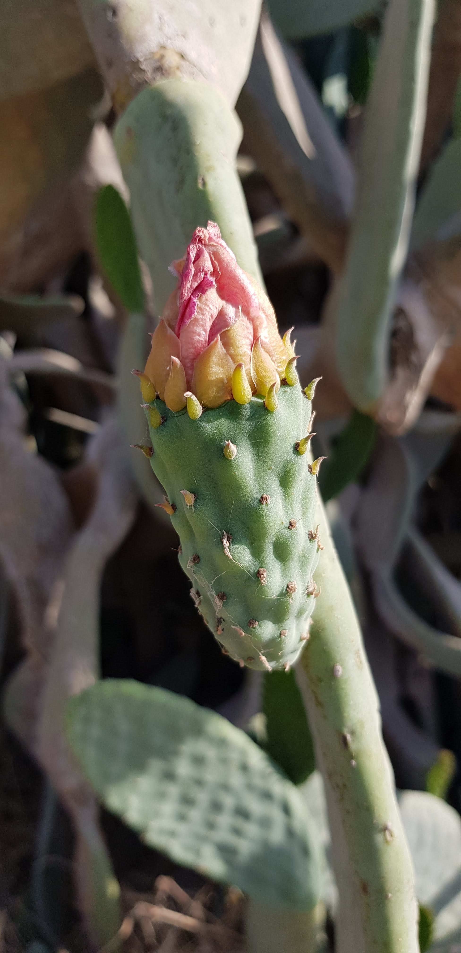 I rode east out of the kibbutz, but immediately a Sabra cactus hedge caught my attention.