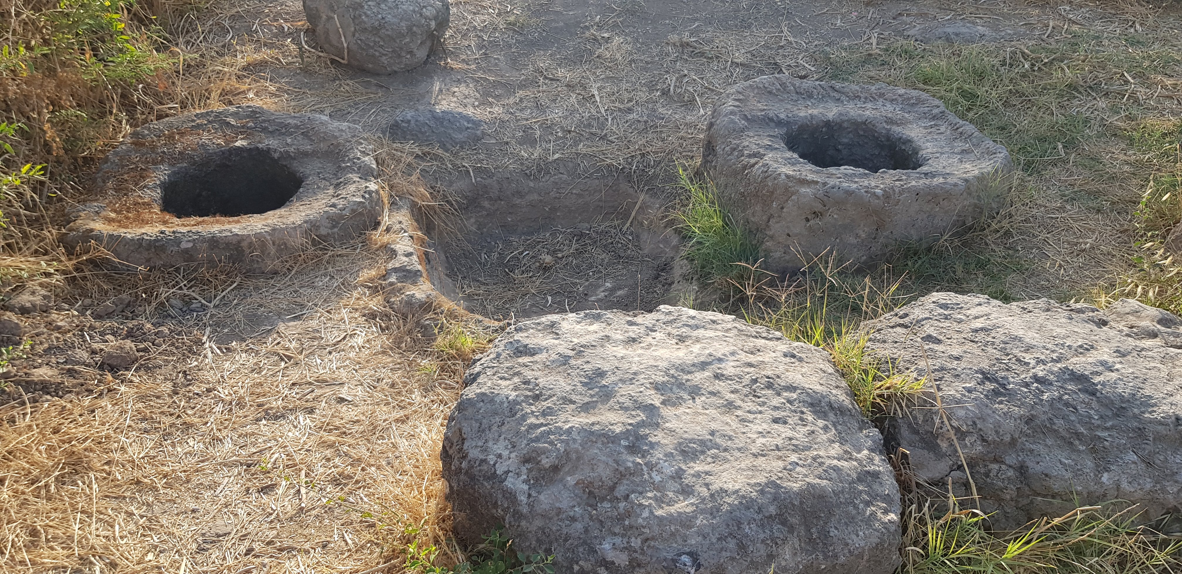 Each olive press consisted of 1 trough for crunching the olives, and 2 presses to squeeze the oil from the pap.  A wooden beam with weights hung from it was used for pressing. Each press had a pitcher to collect the oil. From this liquid, water was separated from the oil.  Researchers estimate that this industrial site produced about 300 tons of olive oil. Most of the oil was exported to Egypt. “…they make an alliance with Ashshur, and oil is carried into Mizrayim [Egypt].” Hoshea 12,2. The olives were cultivated in groves adjacent to the city, in an area estimated at 5000 hectares.