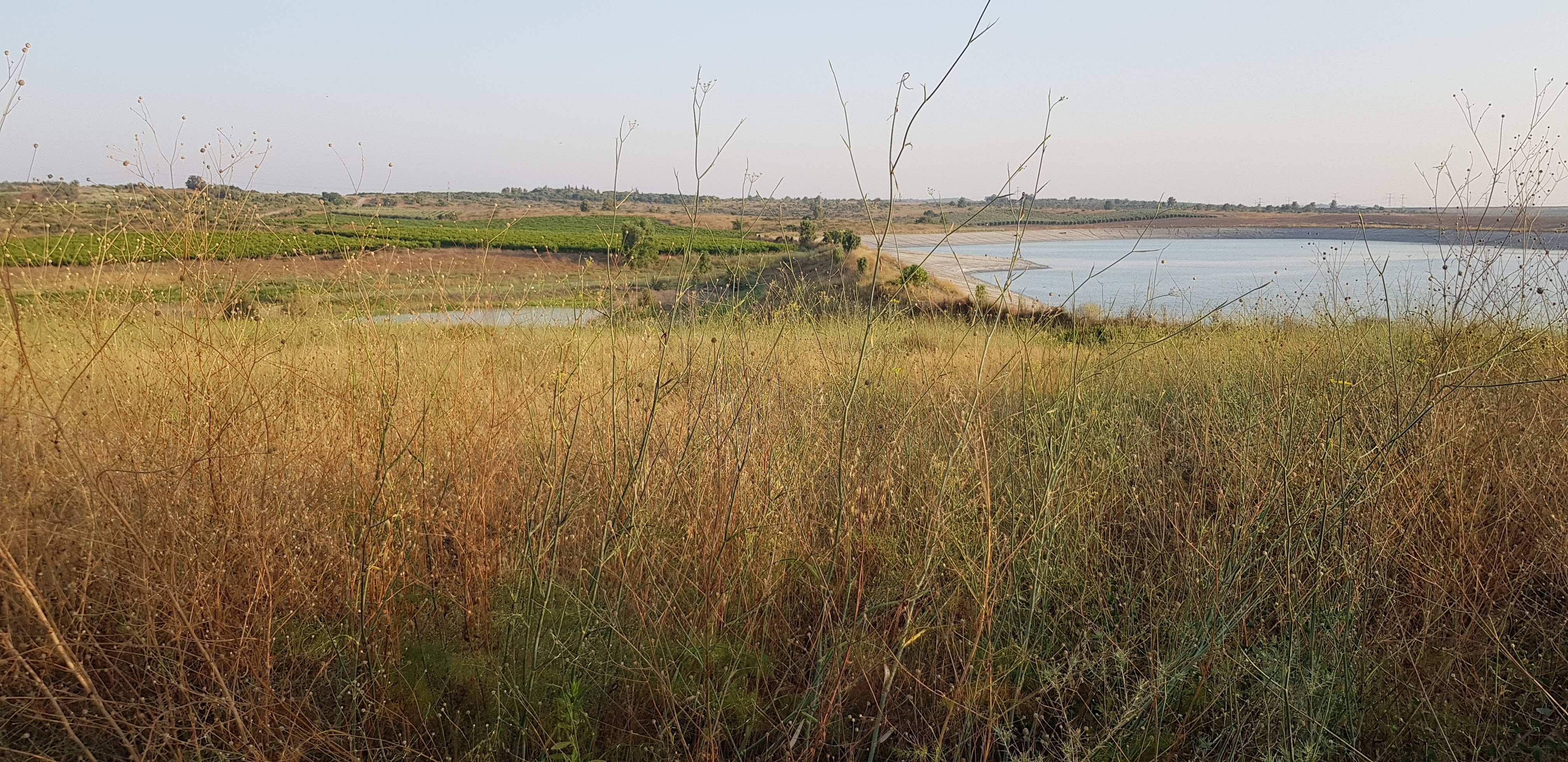 A view from the east to a natural swamp and adjacent Anot Reservoir, used for reclaiming water. Israel is world leader in water reclamation. T